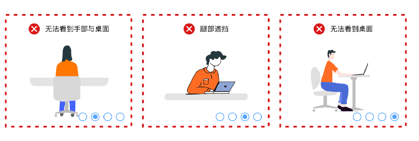 手机监控位置要求如下:将智能手机设备固定摆放,支架应放置在考生左或右后方1.5-2.0米的距离(画面要包含考试屏幕、考生腰部以上上半身、清晰显示考生双手、桌面内容)。
