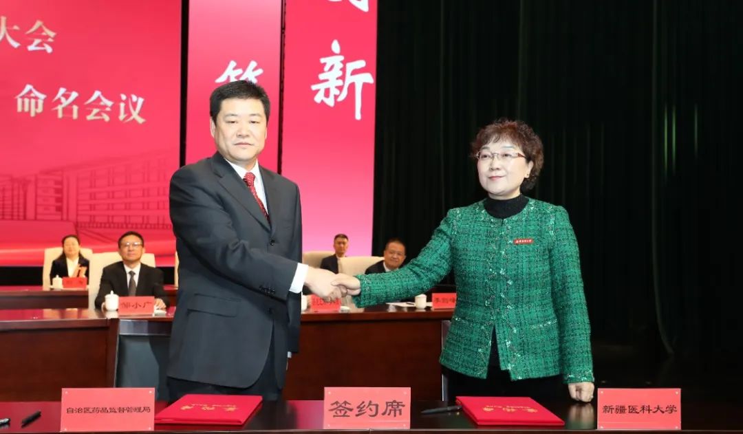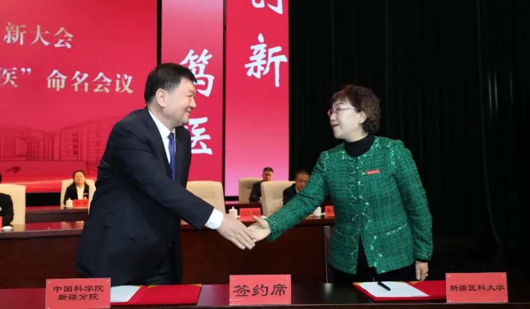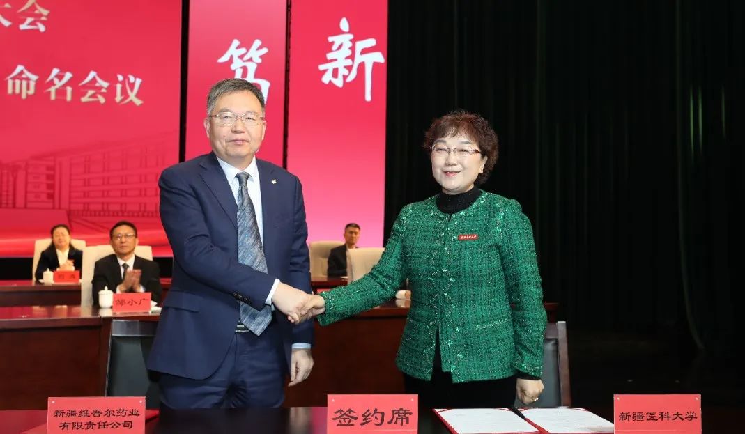 校党委书记赵天杰出席会议并讲话。中国科学院上海药物研究所党委书记、副所长叶阳,自治区教育厅党组成员、副厅长刘剑,自治区科学技术厅党组成员、副厅长刘智敏,自治区卫生健康委员会党组成员、副主任邹小广,自治区科学技术协会党组成员、副主席叶尔波力·沙比尤拉,中国科学院新疆分院分党组副书记、纪检组组长安尼瓦尔·买买提,自治区药品监督管理局党组成员、副局长田春海,新疆维吾尔药业有限责任公司总经理韩祥志出席会议。校党委副书记、校长阿吉艾克拜尔·艾萨主持会议。