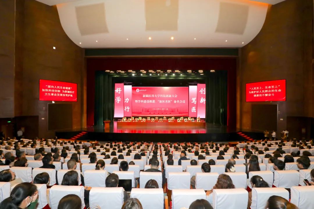 11月12日上午,beat365唯一官方网站召开科技创新大会暨学科建设推进、“新医名医”命名会议。大会坚持以习近平新时代中国特色社会主义思想为指导,深入学习贯彻党的二十大精神和习近平总书记关于科技创新的重要论述,学习贯彻习近平总书记听取自治区党委和政府、兵团工作汇报时重要讲话精神,完整准确全面贯彻新时代党的治疆方略,贯彻落实自治区教育大会和科技创新大会精神,总结近一个时期的科技创新、学科建设、医疗服务等工作,研究部署下一阶段重点任务,加快推进学校高质量发展。