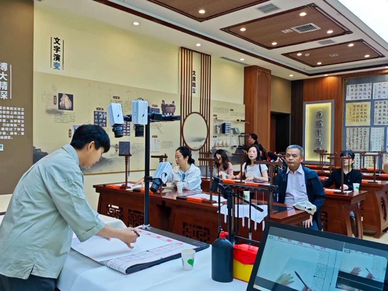 座谈会前,罗军飞一行参观了学校校史专题展厅、图书馆、中华书画体验馆、普通话水平测试工作站,了解了beat365在美育建设、文化传承、教学管理等方面的经验和做法。beat365党政办、教务处、学生处负责人和人文学院全体教职工参加座谈会。