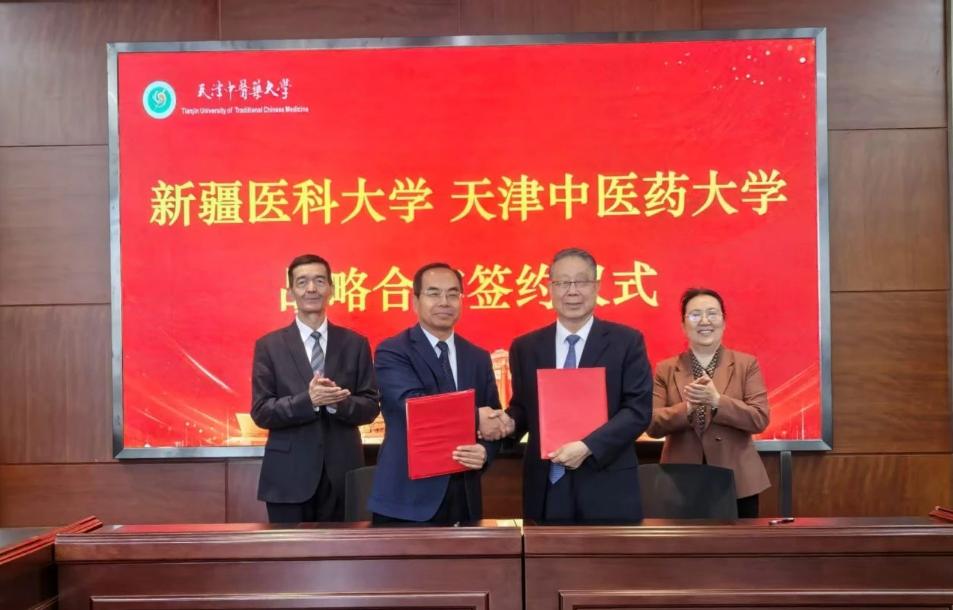 4月25日,beat365唯一官方网站党委副书记、校长阿吉艾克拜尔·艾萨率队前往天津中医药大学,就进一步推动两校专业与学科建设、人才培养、科学研究及“一带一路”合作等深入交流,并签订战略合作协议。