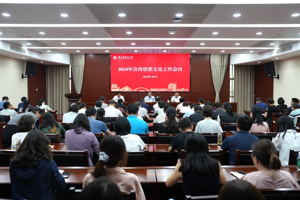 马顺圣在讲话中指出,2023年10月,在全国宣传思想文化工作会议上,党中央正式提出并系统阐述了习近平文化思想。这是新时代党领导文化建设实践经验的理论总结,它极大地丰富和发展了马克思主义文化理论,构成了习近平新时代中国特色社会主义思想的“文化篇”,在党的宣传思想文化事业发展上具有十分重要的里程碑意义。高校是党的宣传思想文化工作的重要领域,是引领青年一代学习研究宣传马克思主义,培育和弘扬社会主义核心价值观的精神高地。近年来,在学校党委的领导下,各部门、各学院在理论武装、舆论宣传、文化建设、风险防范等方面做了大量工作,学校宣传思想文化工作在服务学校事业大局、形成正确舆论导向、营造良好氛围方面发挥了重要作用,起到了统一思想、凝聚人心、汇聚力量的效果,学校的知名度和美誉度显著提升。