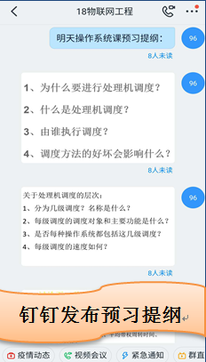 课堂授课阶段,方老师注重内容的系统性引导,比如在讲到处理机调度的三个层次时,补充一张图既把三个层次联系起来,还与前一章相关内容关联起来,让学生明白这些理论知识不是孤立的。增加互动环节也是方老师尽力在做的一个方面,学生在钉钉边看直播边回答问题,参与积极性挺高。不过由于网上问答有时间延迟,在线等答案的时间长短和问题的转换时机把握需要老师很好把握。