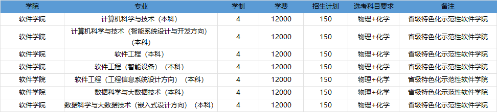 学院现设有计算机科学与技术、软件工程、数据科学与大数据技术等3个本科专业,在校生2092人。其中,计算机科学与技术专业于2014年获批河南省专业综合改革试点,2019年获批河南省一流本科专业建设点;数据科学与大数据技术专业于2016年依托教育部数据中国“百校工程”项目,成为学校首批校企合作共建专业。
