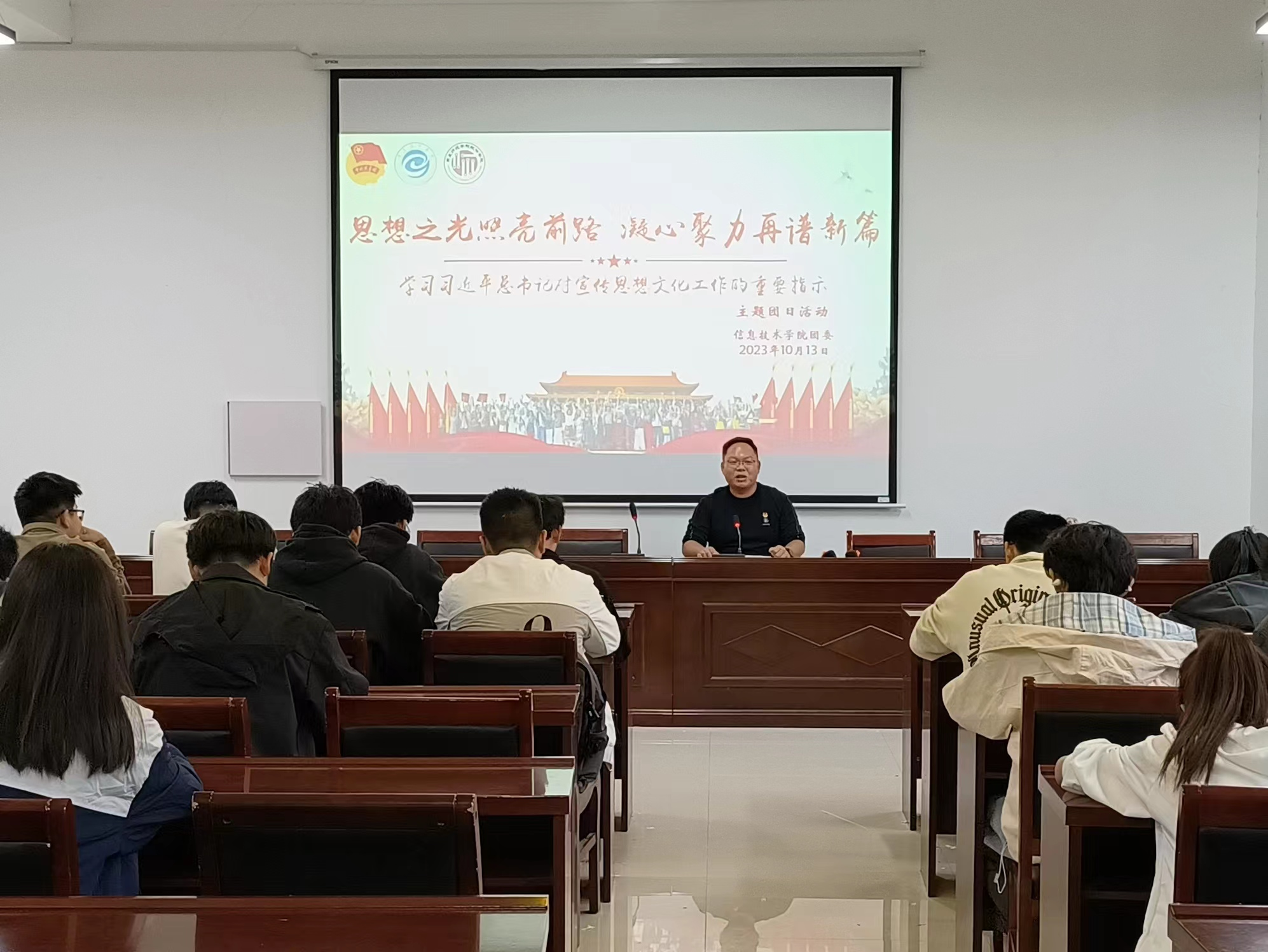 10月13日,jinnianhui金年会诚信至上团委副书记彭会锋在梁园校区三商楼112会议室为各支部优秀团员代表开展了专题宣讲会,通过宣讲交流让同学们明确了作为新时代青年大学生应当担负起的使命和责任,以习近平总书记的重要指示为指导,立足身边的生活学习,以实际行动助力新时代宣传思想文化工作。
