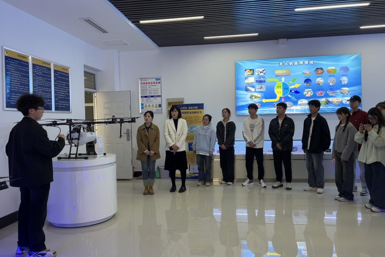活动现场,无人机社团学生代表闫池为同学们介绍无人机社团的人员构成和飞行项目,解释不同无人机的工作原理,包括气动设计、电子控制系统、导航技术和遥控通信等,并详细讲解了无人机的特色亮点和市场运用。 随后,为同学们展示了无人机的操作流程和性能特点,并组织有兴趣的学生体验无人机初级动作的操作,同学们兴趣斐然,积极参与。今后,我们将继续以党建为引领,用科技赋能专业发展。