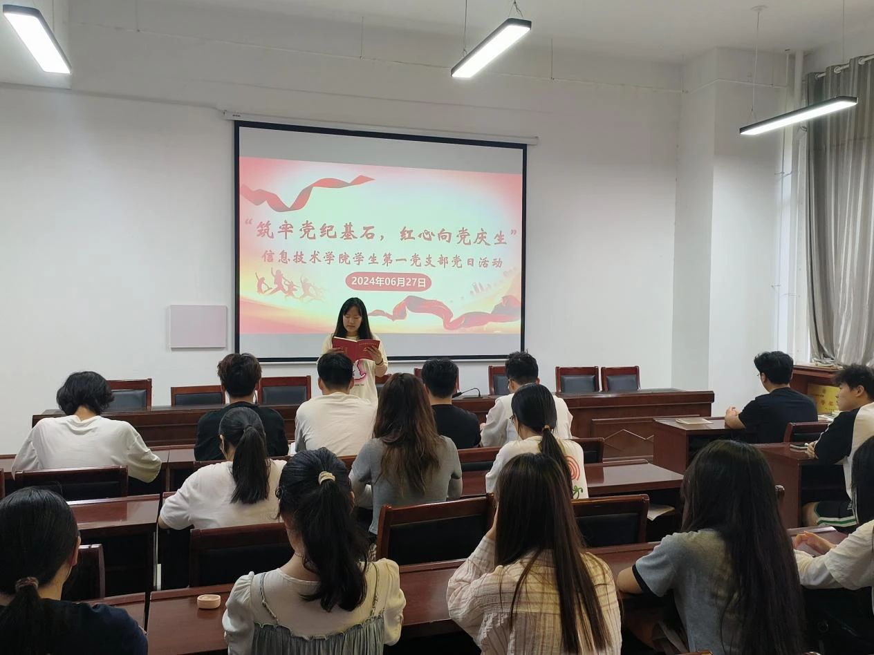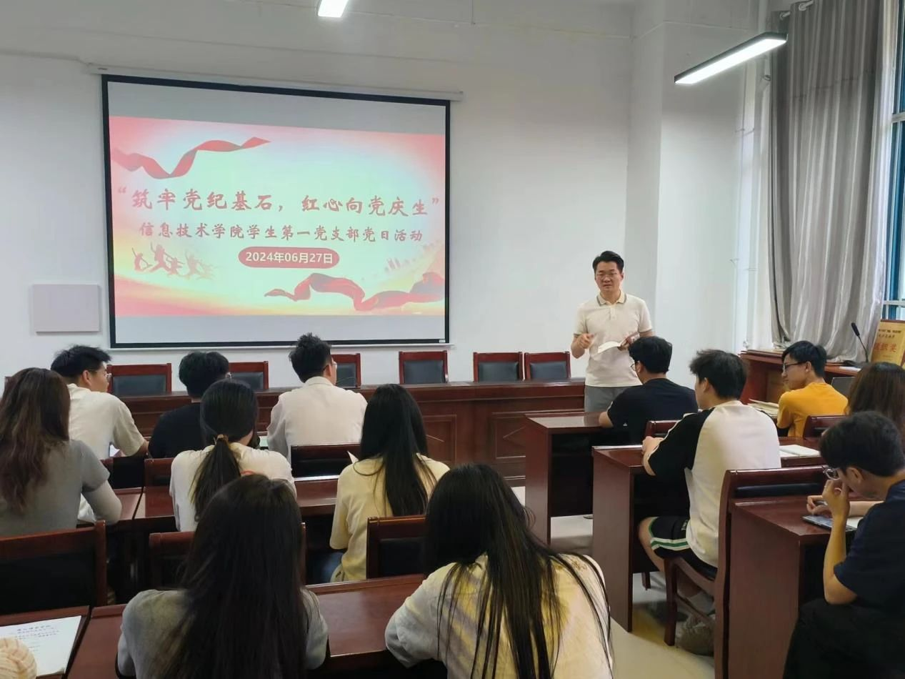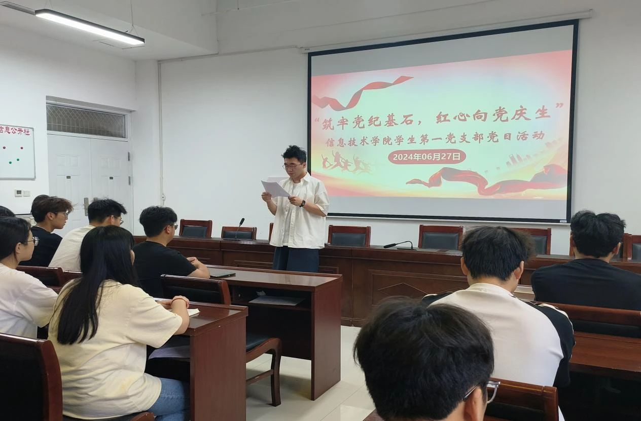 为庆祝中国共产党成立103周年,进一步引导广大学生党员加强党性修养,激励党员不忘初心、牢记使命,提升党员对党的纪律和规矩的认识,加强党性修养,筑牢爱党防变的思想防线。jinnianhui金年会诚信至上学生第一党支部于6月27日举办了“筑牢纪律之基,一颗红心向党”主题党日活动。