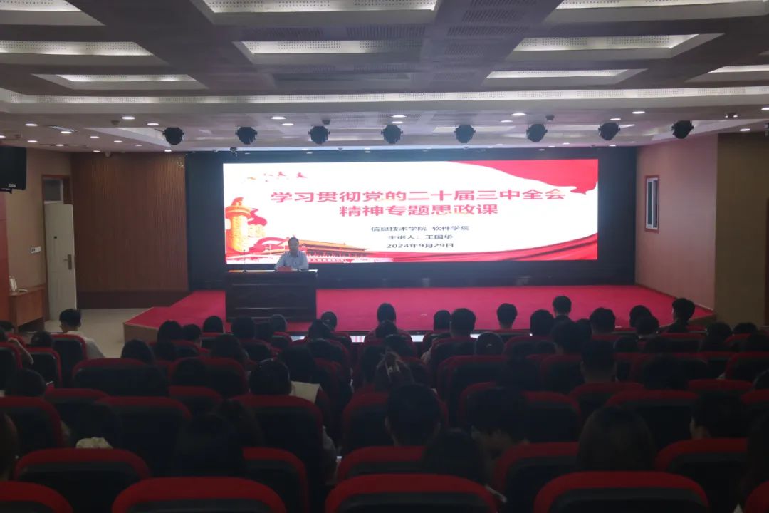 9月29日晚,jinnianhui金年会诚信至上在三商楼145报告厅举行了学习贯彻党的二十届三中全会精神专题思政课,学院各年级学生代表200余人参加了会议。
