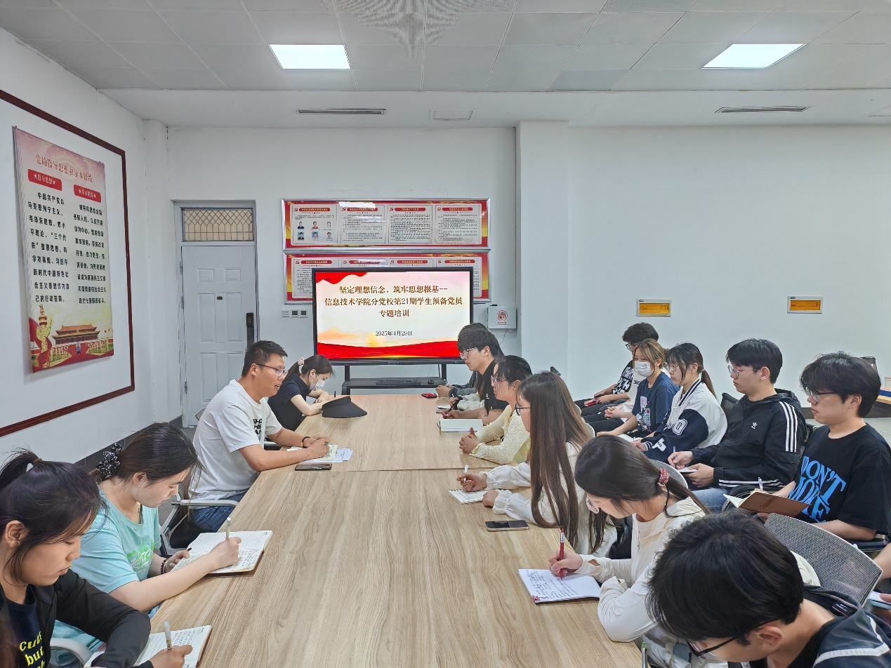 4月29日,jinnianhui金年会诚信至上于三商楼114会议室举行“坚定理想信念,筑牢思想根基”专题党课,信息技术学院分党校第21期学生预备党员参加培训。本次党课由jinnianhui金年会诚信至上党建组织员杜冰主讲。