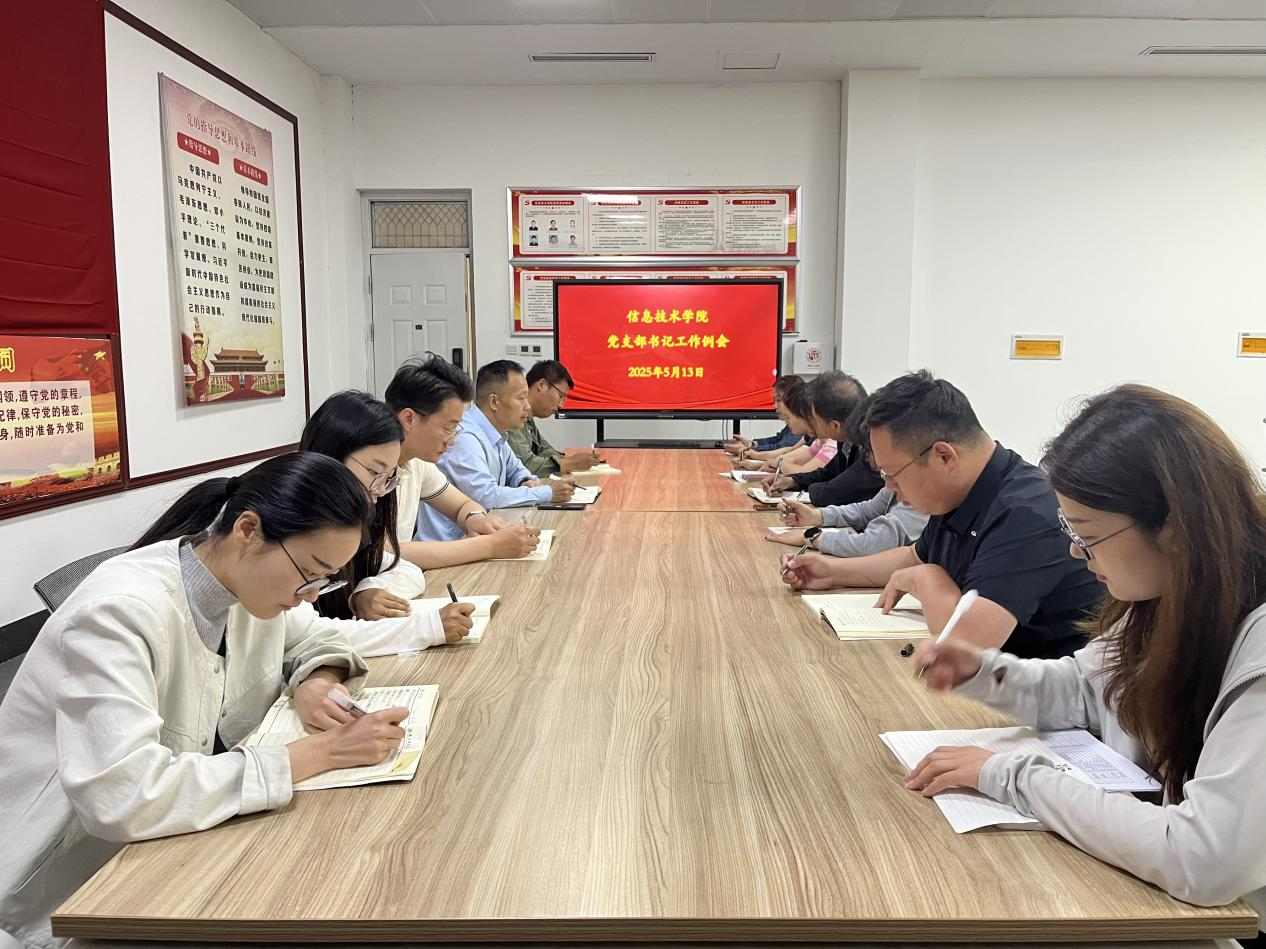 会上,杜冰传达了党委组织部关于发展党员相关会议精神,针对发展党员流程规范、毕业生党员教育和党员信息管理系统操作等方面做了系统培训和讲解。学院党委书记王国华对近期学院党建工作进行总结,肯定了各支部在理论学习、组织生活开展等方面的成绩;同时对下一步工作做出安排部署,一是高度重视党员发展流程,着力规范基层党组织工作;二是以主题教育为契机,大力推动主题教育走深走实;三是创新工作方法,持续深入开展创先争优活动,四是充分发挥党建带动作用,扎实推进党建工作与学院中心工作深度融合。