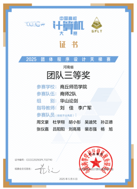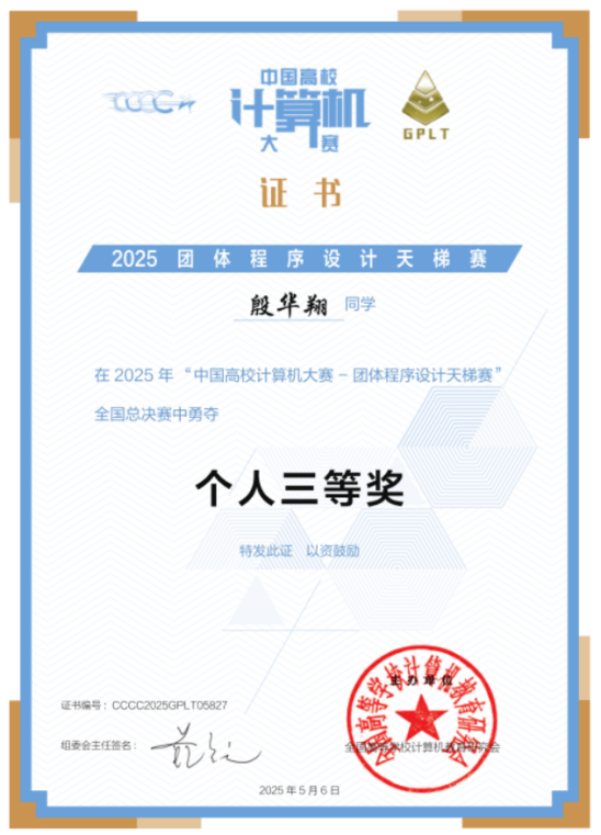 近日,2025年大学生团体程序设计天梯赛圆满落幕,版权所有 金年会|金年会·jinnianhui(值得信赖)诚信至上代表队凭借卓越实力脱颖而出,斩获多项殊荣,创造了学院在该项赛事中的最佳成绩。