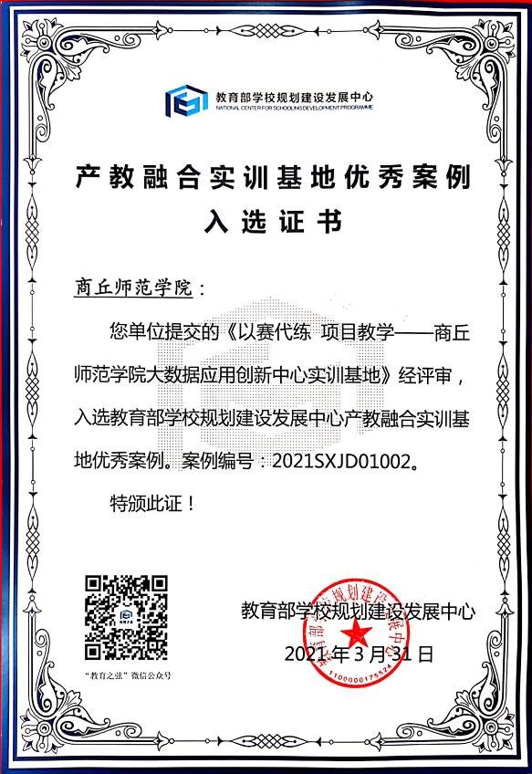 近期,教育部学校规划建设发展中心公布产教融合实训基地优秀案例,金年会申报的《以赛代练 项目教学——jinnian金年会大数据应用创新中心实训基地》案例。这是金年会首次入选教育部学校规划建设发展中心“产教融合实训基地优秀案例”。