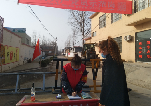 积极参加疫情防控点值班,记录来往行人员情况,查看健康通行卡,要求进出的人戴口罩,测量体温,消毒并登记车辆信息,做好防护宣传工作。
