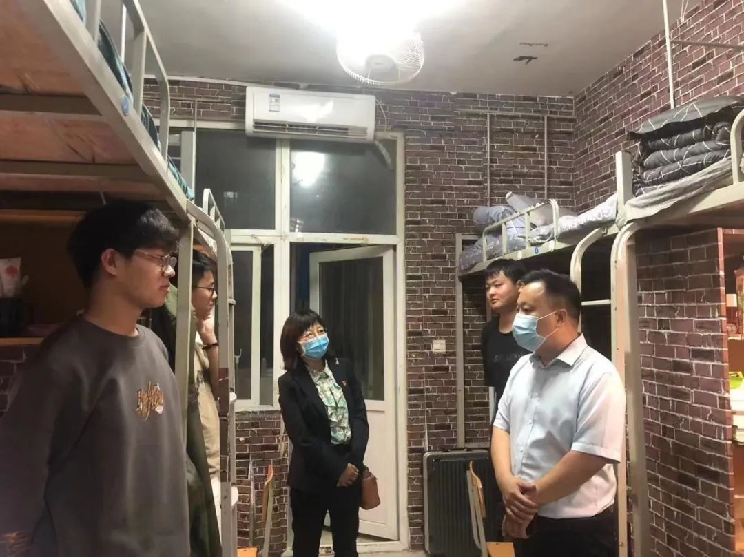 在和学生的交谈中,王国华书记和王春霞院长了解了返校后学生的学习和生活情况,倾听他们的实际诉求,并且对于学生所提出的相关问题给予及时解答,并且引导学生尽快的适应大学生活。同时学院领导也提醒学生,要注意宿舍用电安全,提高安全防范意识,营造一个良好的宿舍环境。