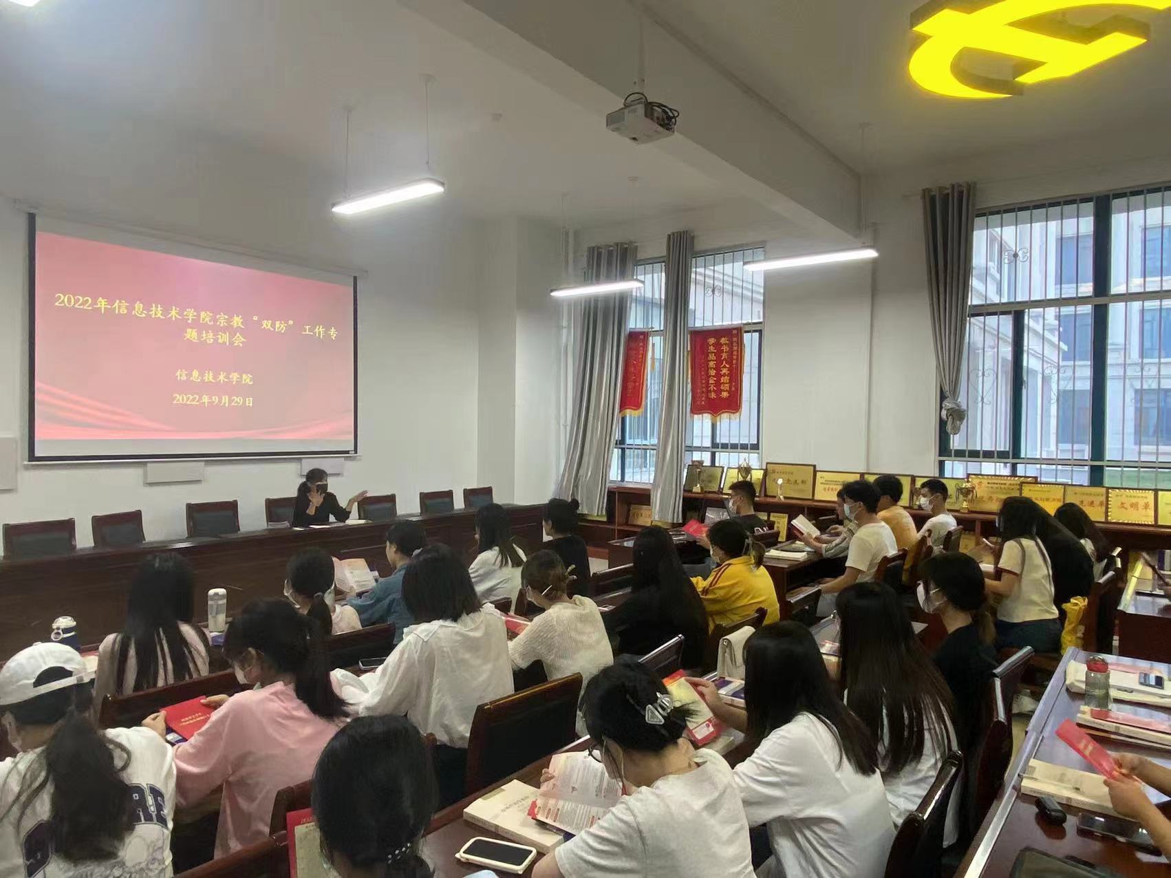 培训会上,学工办主任李阳向同学们讲解党的民族宗教政策和相关法律法规,以及民族团结进步先进事迹等内容。引导学生增强中国特色社会主义道路自信、理论自信、制度自信、文化自信,树立正确的国家观、民族观、宗教观、历史观、文化观,自觉增强民族团结意识,铸牢青年大学生中华民族共同体意识的主阵地,为构建和谐校园奠定坚实基础。