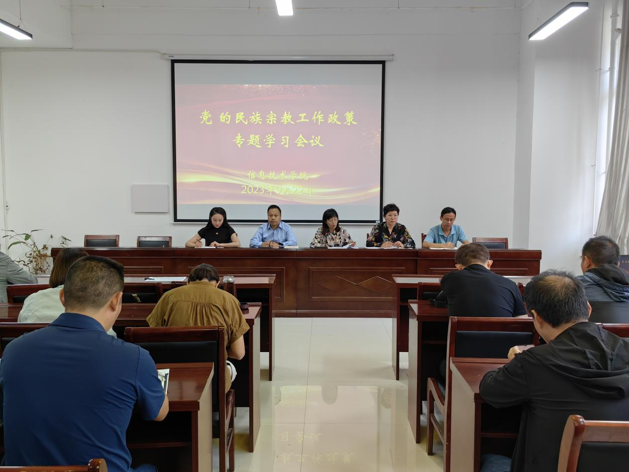 会上,王国华传达了全省教育系统安全稳定工作会议精神,并对秋季学期宗教“双防”工作、民族宗教政策法规宣传月活动进行了安排。并提出三点工作要求:一要全体老师要提高站位,充分认识到高校民族宗教工作的重要性和必要性;二要加强理论学习,强化理论武装,做好工作研判,不断提升做好民族宗教工作的能力和水平;三要抓好工作落实,针对工作中的弱项,在落细落小落实上下功夫,加强工作交流。