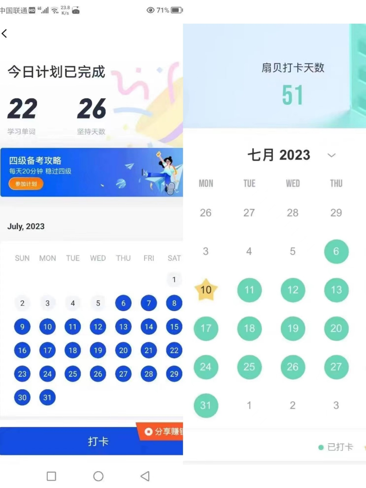 为提升学生英语学习积极性,切实提高四六级考试通过率,jinnianhui金年会诚信至上于7月6日起启动“英语打卡”活动,陪伴同学们四六级闯关之旅。