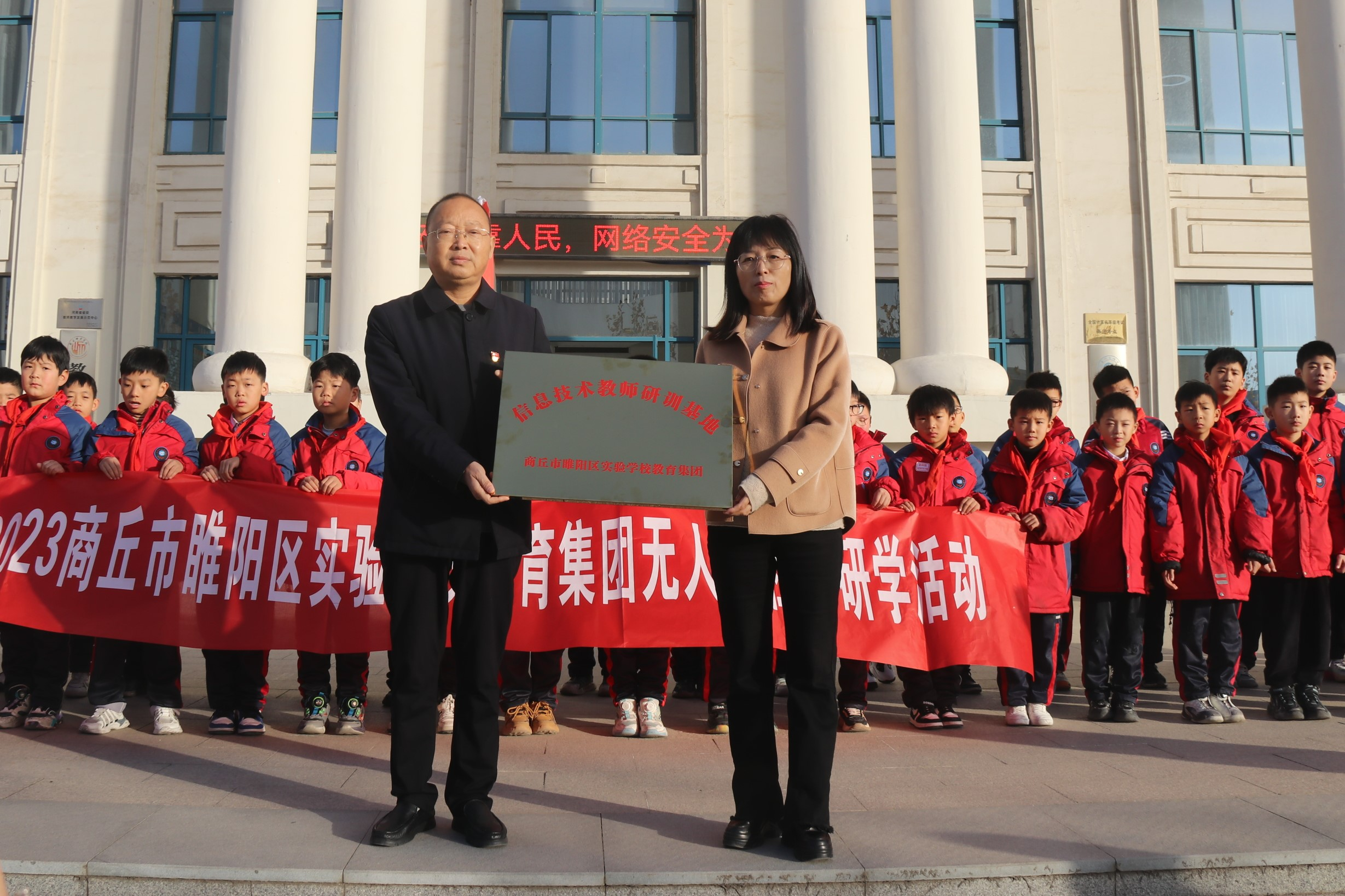 12月7日,商丘市睢阳区实验学校研训基地揭牌仪式在三商楼前举行。商丘市睢阳区实验学校校长胡丕需、副校长郑选玉,jinnianhui金年会诚信至上院长王春霞、副院长刘佳出席揭牌仪式,50余名师生代表参加本次活动。