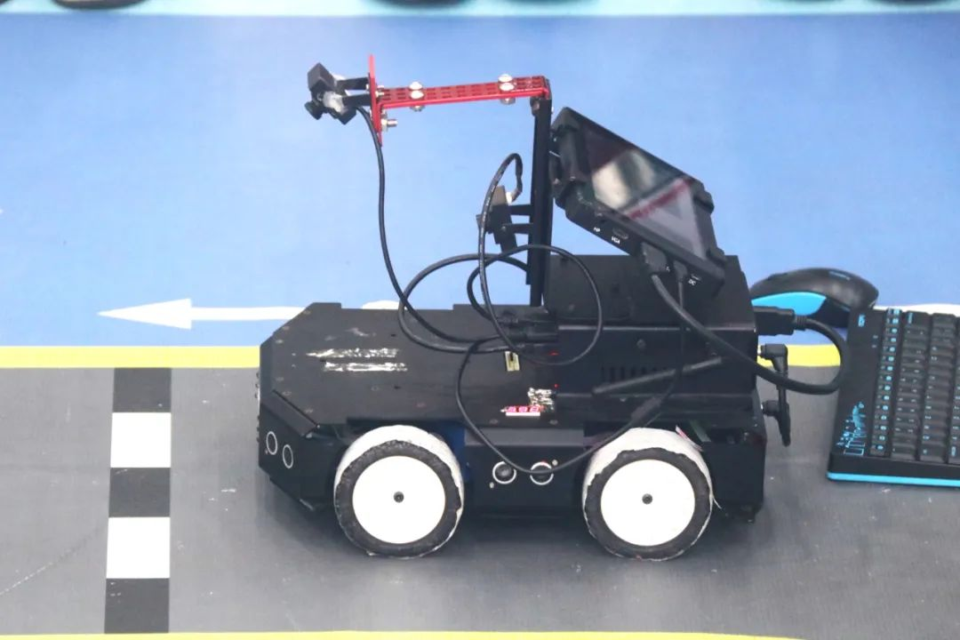 人工智能实验室变身为孩子们的智慧乐园,机器小车在地面自由穿梭,孩子们惊叹声络绎不绝。