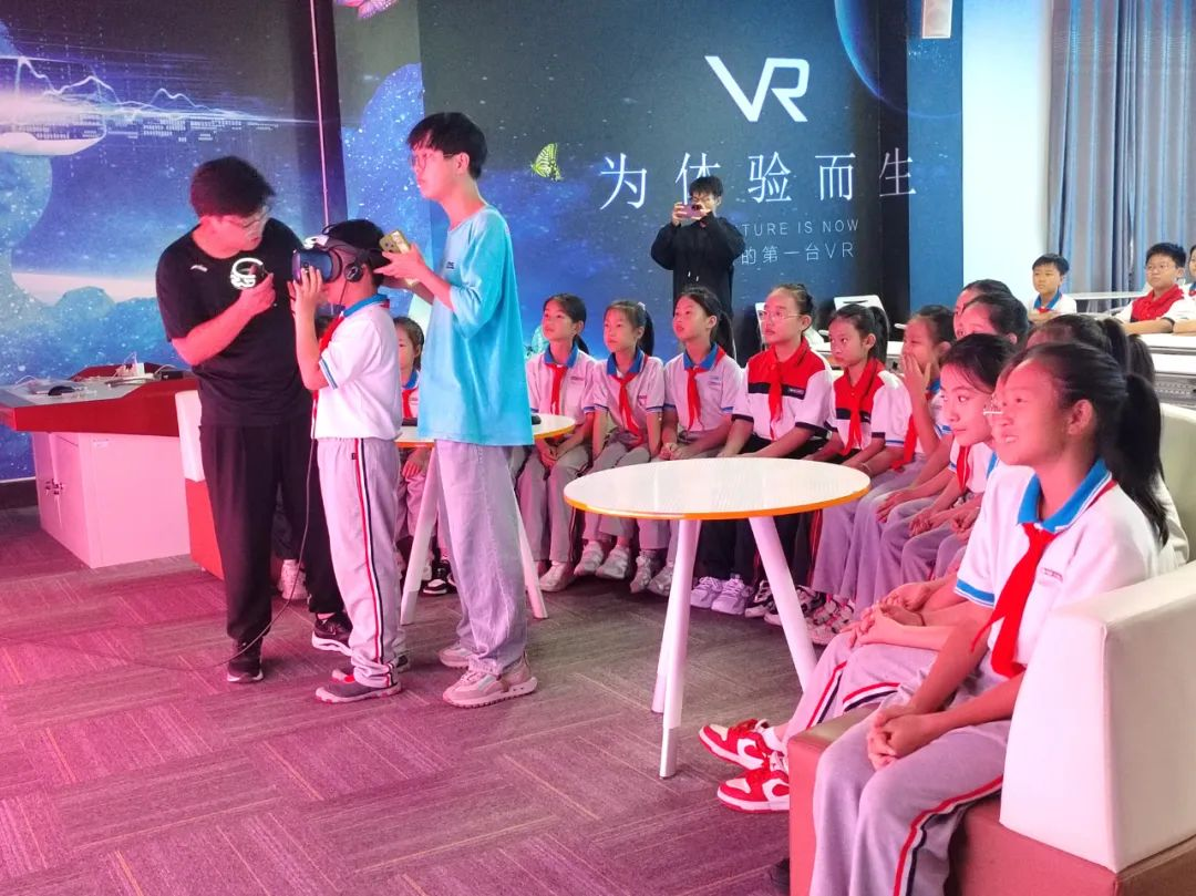 随后,小朋友们来到VR实验室,戴上VR眼镜,在不同场景中切换、体验,在逼真的虚拟场景中玩的不亦乐乎,激发孩子的探索欲和求知欲。