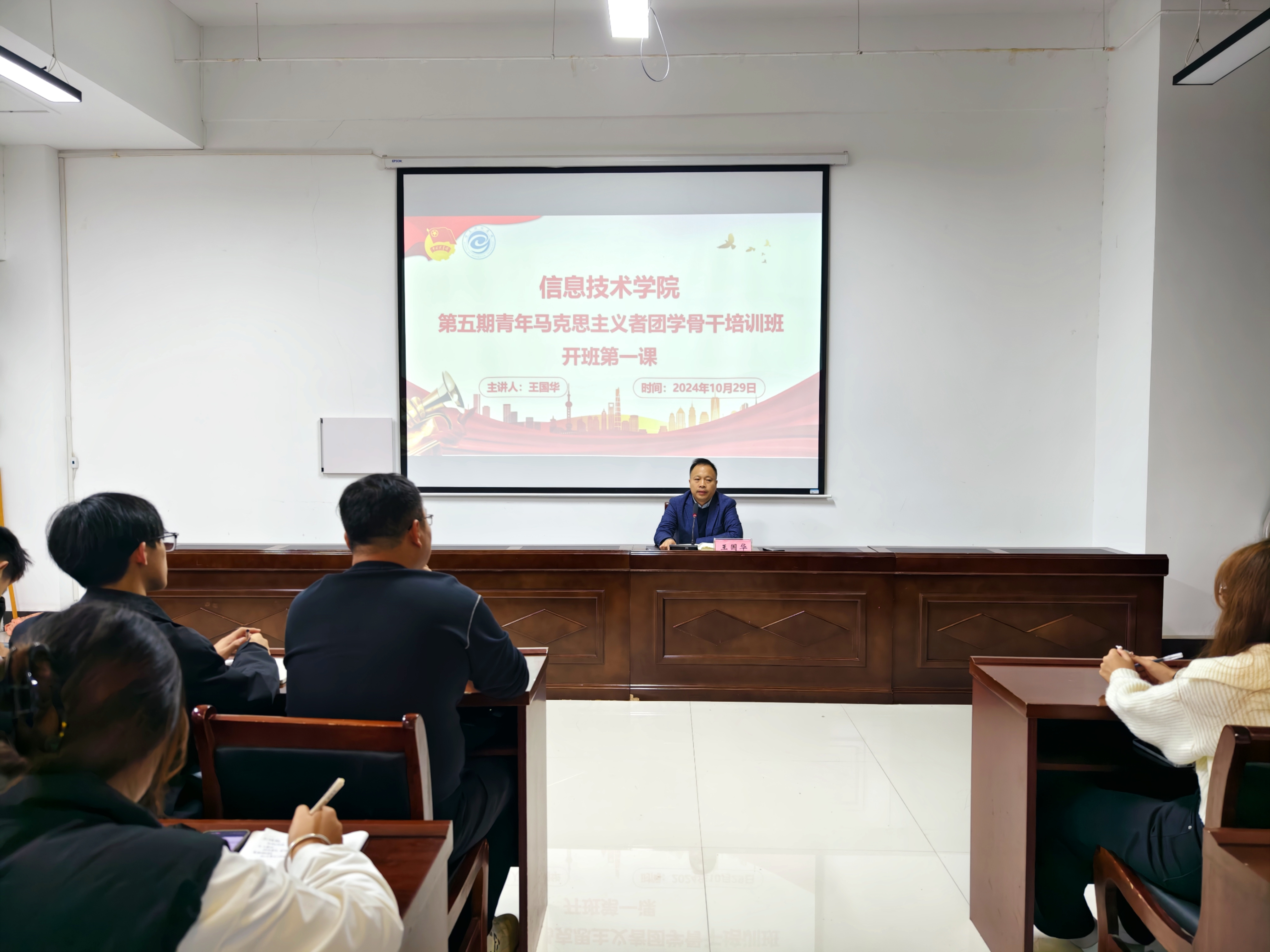 随后,王国华为本期青年马克思主义者团学骨干培训班上开班第一课,分别从在坚定理想信念中争当思想引领的表率、在锤炼意志品质中争当踏实肯干的表率、在知行合一中争当学习实践的表率三个方面展开讲述,鼓励同学们不断增强政治定力,树立优良作风,提高综合素质,勇担时代重任,争做有理想、敢担当、能吃苦、肯奋斗的新时代好青年。