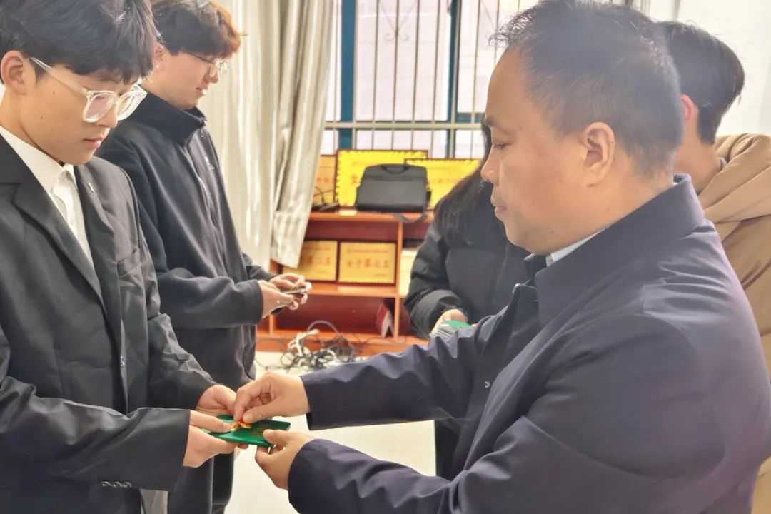 王国华为新团员颁发团徽和团员证并寄语新团员,希望他们在今后的生活学习当中严格要求自己,踏实学习,不断进步,做理想的追梦者、纪律的守护者、学习的先锋者,以实际行动践行青春誓言。