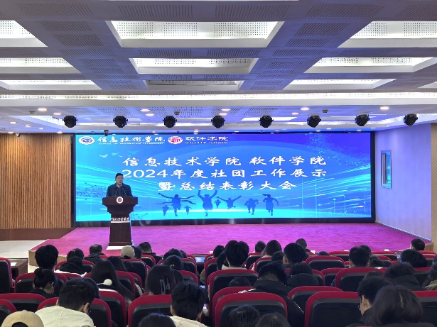 为全面总结学院社团年度工作成果,激励青年学子积极投身创新实践,1月3日,信息技术学院在梁园校区三商楼145演播厅隆重召开2024年度社团工作展示暨总结表彰大会。学院党委书记王国华、副院长刘佳、各社团指导老师、负责人及师生代表共同参会,回顾过去一年的成长与收获,擘画新一年的发展蓝图。