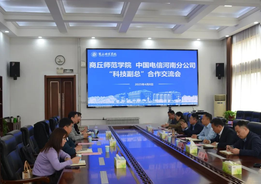 4月8日,中国电信河南分公司教育客户部总经理张旻一行莅临金年会合作交流,双方就深化"科技副总"校企合作项目合作举行专题座谈。副校长翟滨出席活动。党政办公室、校地合作与服务中心、jinnianhui金年会诚信至上等相关单位负责人参加座谈。
