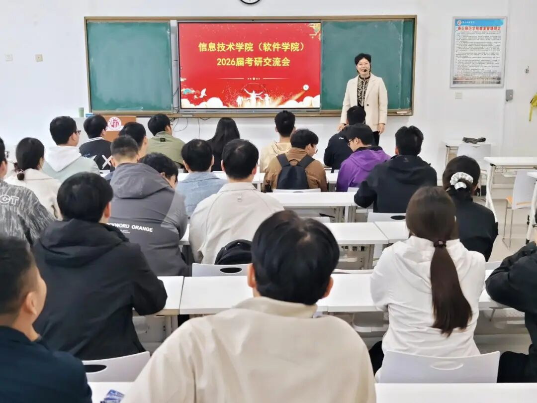 会上,方莹首先对当前考研形势与政策进行了深入剖析。她结合信息技术领域的学科特点与发展趋势,从如何评估自身实力、搜集院校信息、分析专业排名与导师研究方向等多个维度,为同学们分享了全面而实用的择校策略。他强调,选择比努力更重要,鼓励同学们要基于自身专业能力与职业规划,进行“梯度式”择校,力求做出最契合个人发展的最佳选择。在交流环节,同学们就学硕与专硕的区别、历年报录比分析等具体问题进行了深入探讨。